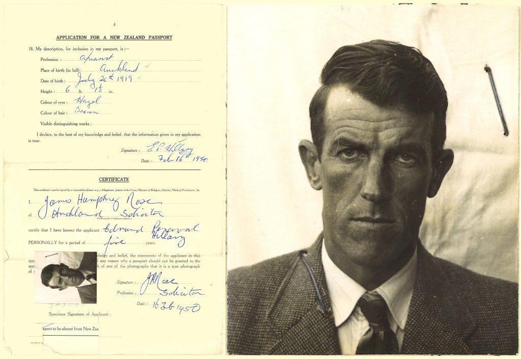 Edmund Hillary, passport application, 1951. Archives New Zealand