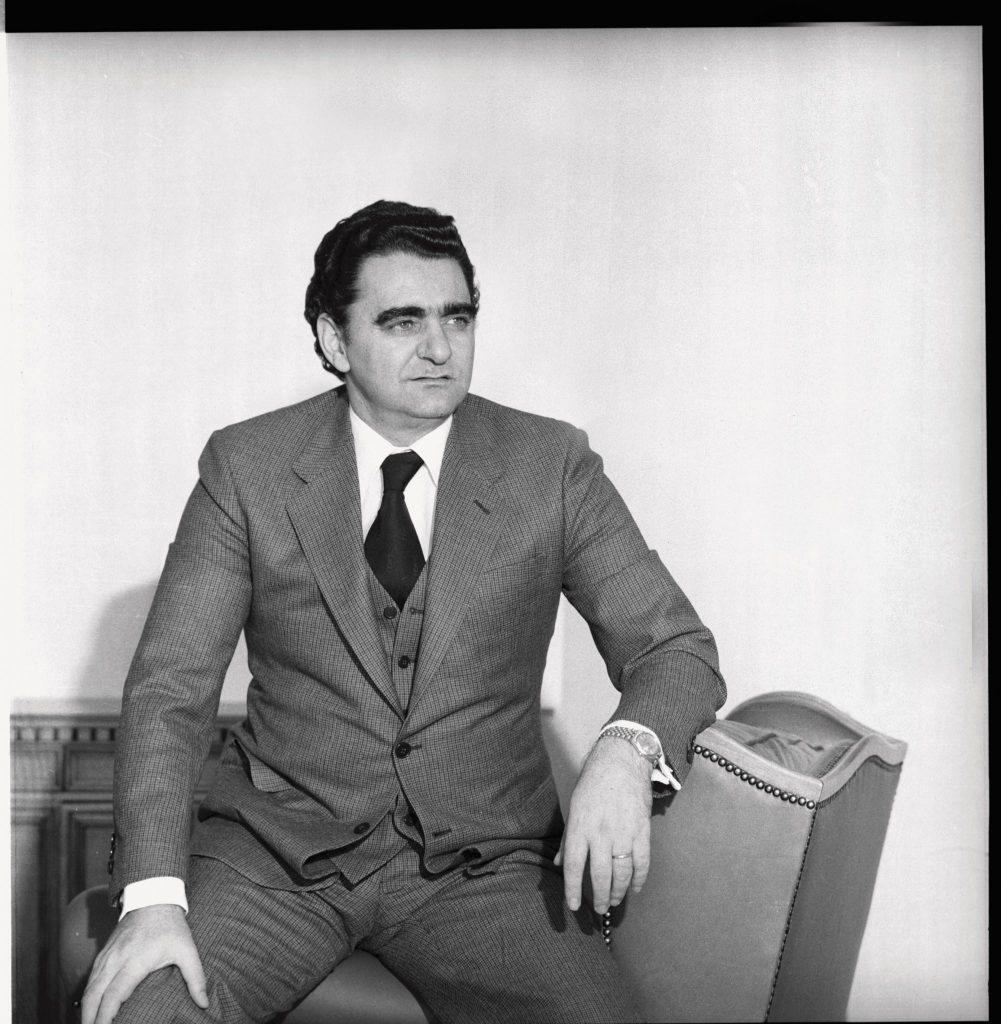Nikos Vardinogiannis, left, greets his younger brother, Vardis Vardinogiannis, at the Grande Bretagne Hotel in central Athens on the evening of Nov. 11, 1972, the day the Motor Oil refinery was inaugurated.