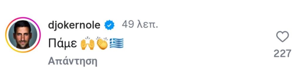 Giannis posted photo on his Instagram account earned a reaction by another sport’s superstar, Novak Djokovic in this case, who posted the one-word response of “Pame”, meaning “let’s go” in Greek.