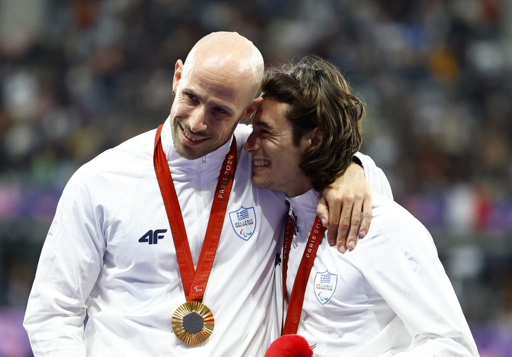 24-year-old sprinter Athanasios Ghavelas celebrated his second gold medal at the Paris Paralympics yesterday, alongside his guide Ioannis Nyfantopoulos, after finishing first in the men’s 100 meters (T11) final.