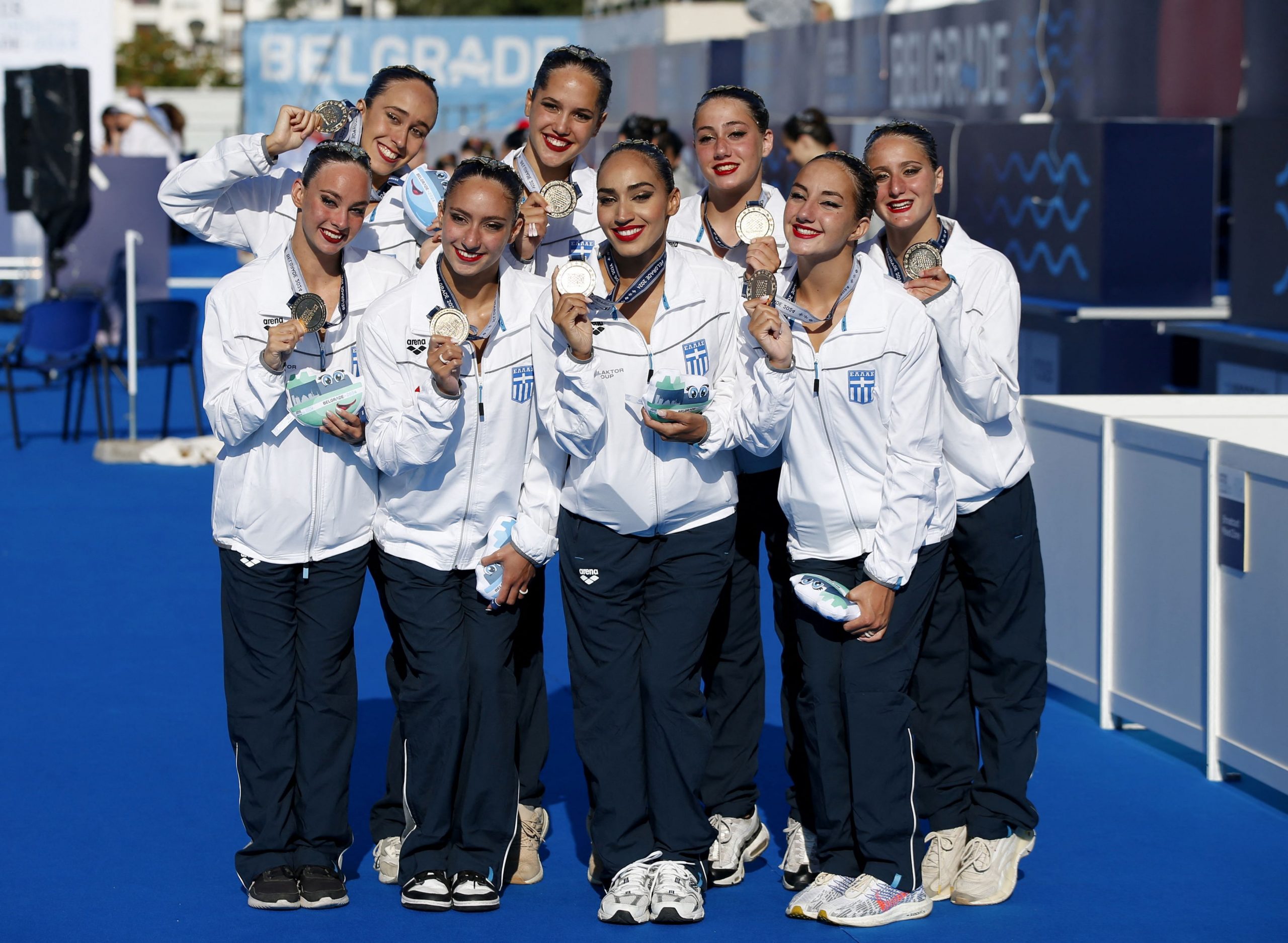 The Greek artistic swimming team won its first ever gold medal at the European Aquatics Championships in Belgrade on Friday.