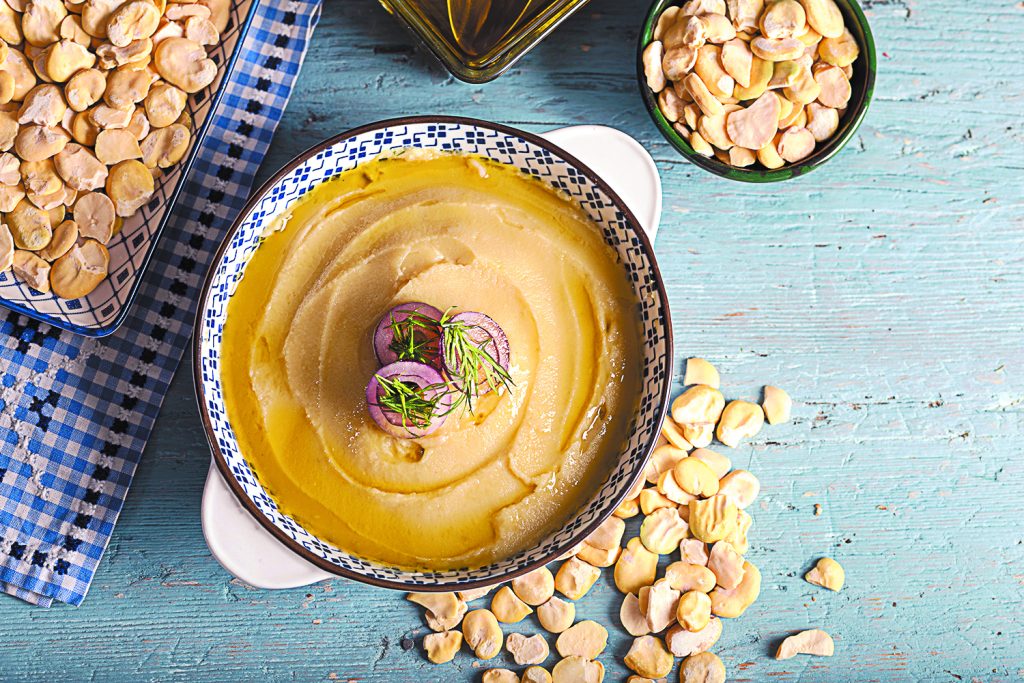 Taditional fava with olive oil. Mashed broad beans fava appetizer.