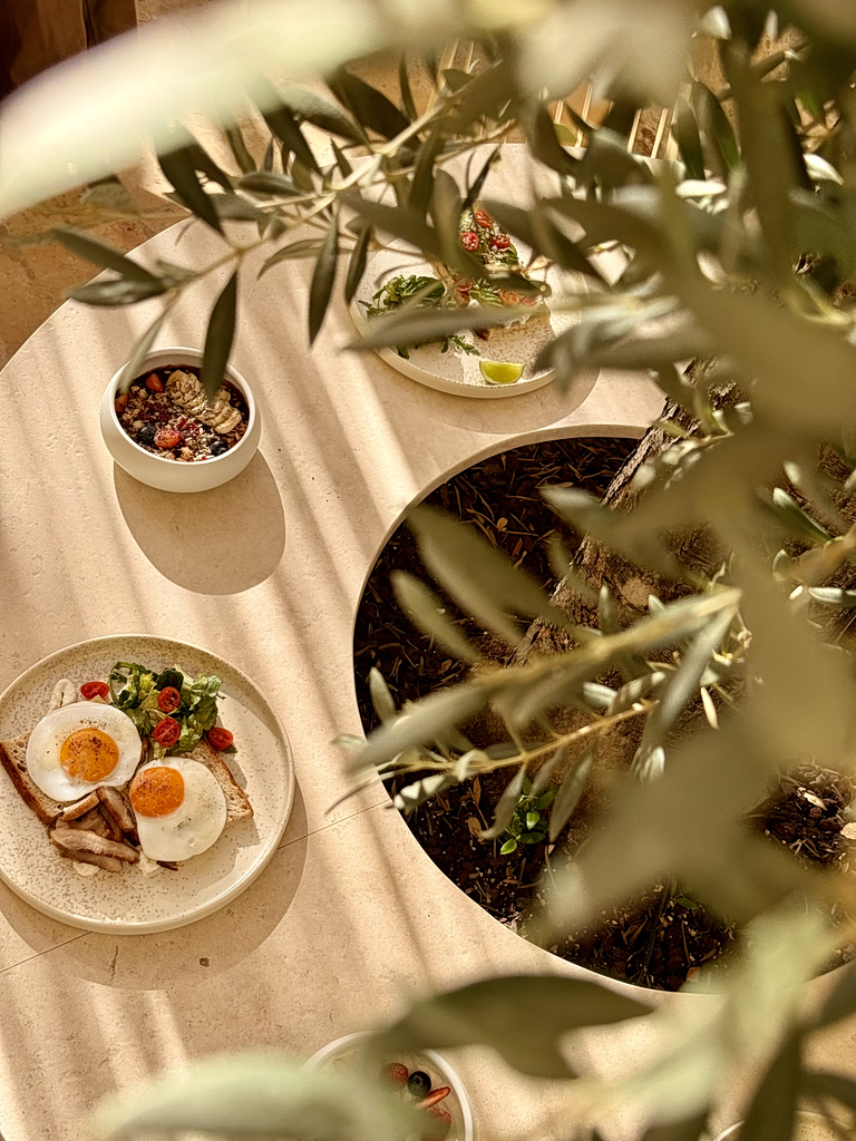 Jewelers Eirini and Venetia Voutsa have opened several retail stores in Plaka, but this newest, more ambitious project they launched with their brother Orestis Voutsas came to them once they saw the space. The Sparkles are a family business and new to the concept store scene, having first opened their doors in October 2025. “There is something about the energy of this hidden spot, right across the Municipal Market, it’s just perfect to escape the noise of the city.” said Eirini, “We had no intention of ever delving into the service industry, the space naturally led us there. Initially it was meant to be more retail-oriented, but our design led us to create a versatile place to host with coffee and good breakfast food.”