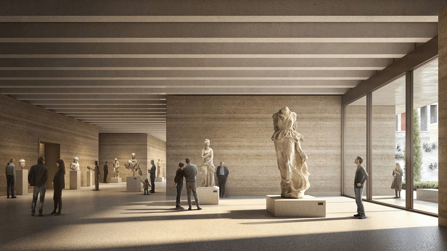 Photorealistic rendering of the interior of the renovated National Archaeological Museum.