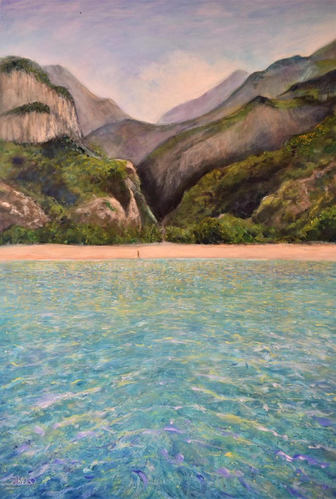But it’s not just about painting pretty pictures. There are some other elements in there too, such as the idea of painting the increasingly diminishing ‘pockets of paradise’ still left on earth. And, in some of those paintings, there are some things lurking in those seemingly calm waters. But they are not the main focus.