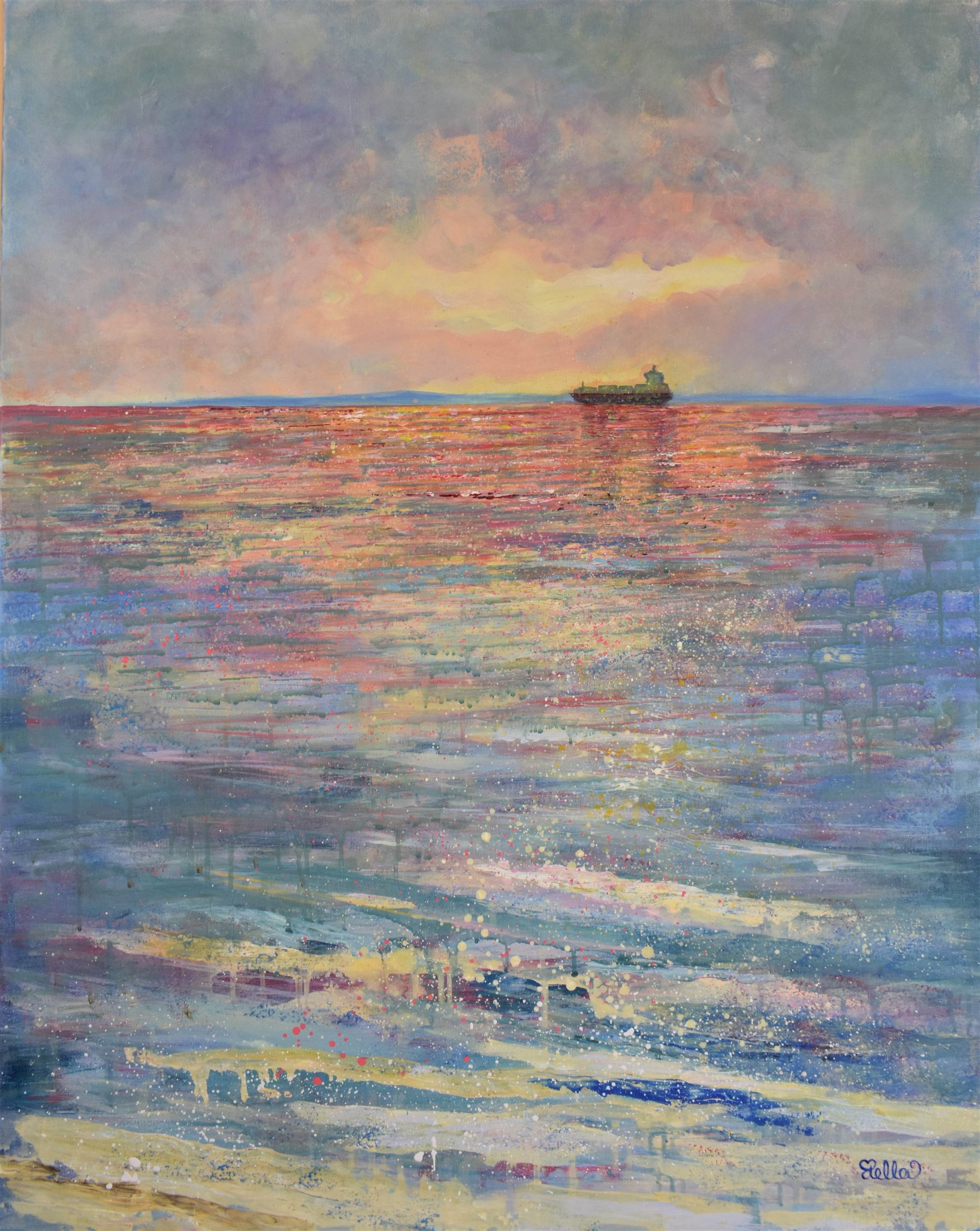 Byron’s poem “Isles of Greece”, Coleridge’s “Rime of the Ancient Mariner” and Cavafy’s “Ithaca” have also inspired my seascapes. In Byron’s poem, the sea is a symbol of freedom, while Coleridge’s poem explores the Romantic Triad of nature, spirit, humanity. Cavafy’s poem on the other hand speaks of the importance of the journey, and of the return.