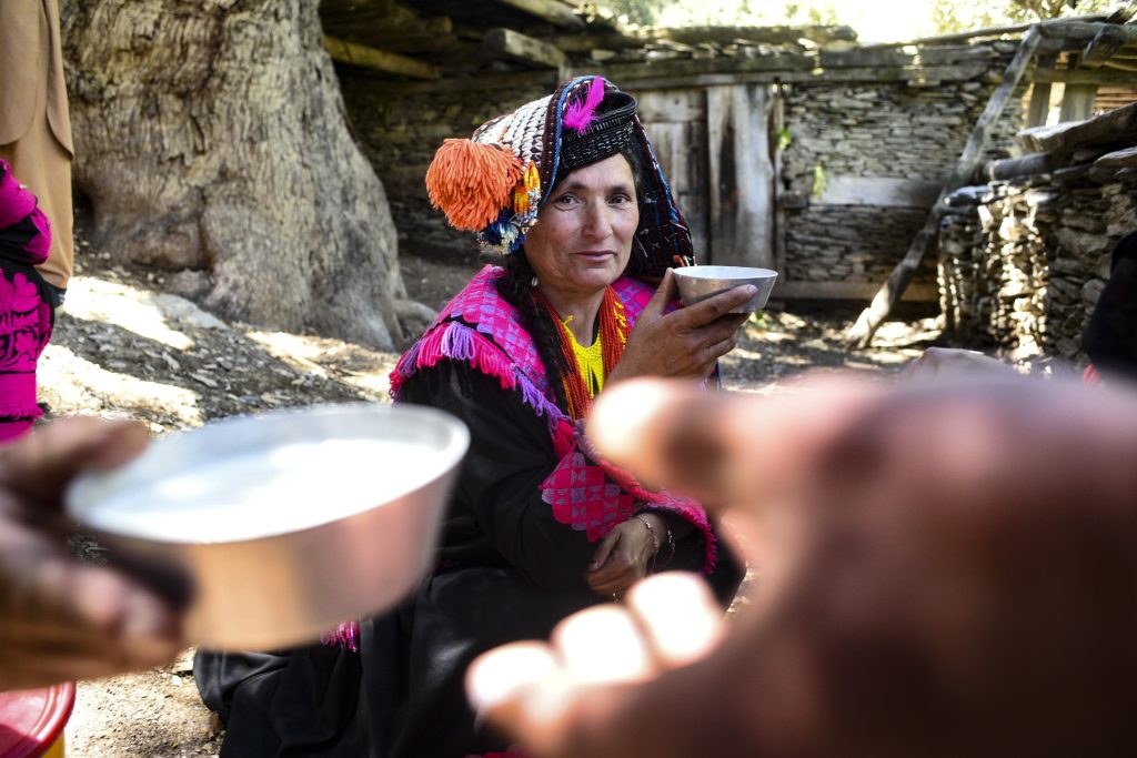 May 14, 2024- Kallas Valleys, Pakistan:During “Tsiripipi”, a special, local milk ceremony into the spring festival, women and girls pick the first flowers of the year, while families exchange gifts of cheese and milk which is considered sacred. During this feast, every shepherd shares the milk from his goats.