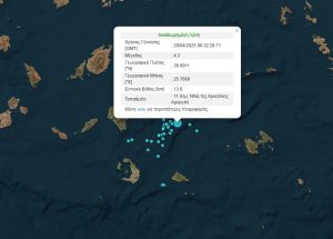 The tremor was recorded at 11.32 (09.32 GMT) and pinpointed 11 kilometers south, southwest of the Arkesini settlement on the Cyclades island