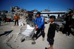 As a fragile ceasefire holds, thousands of displaced Palestinians return to the ruins of Gaza City while President Trump arrives in Israel to promote his contested peace plan