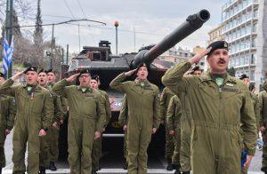 The customary military parade in Athens passed before Parliament and Syntagma square, with the nation’s political and armed forces’ leadership looking on