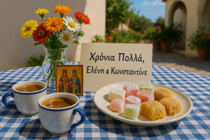 Read on to learn about Greek name day traditions and how to nail the perfect greeting to Eleni and Konstantinos on May 21.