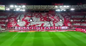 The Georgios Karaiskakis Stadium was covered from end-to-end with a remarkable choreo detailing the history of the top multi-sport team in Europe