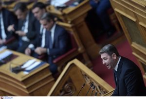 Mitsotakis and Androulakis exchanged jabs today in a plenary session initiated with a briefing of this year’s fire season, that expanded to a wider-ranging debate on various hot-button topics