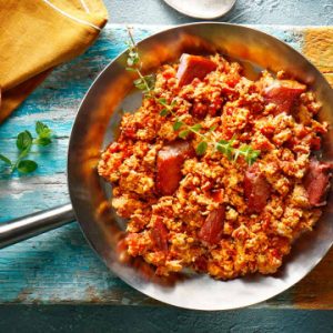 A rustic Greek dish from the Mani region, where cured pork (syglino) meets eggs and tomato in a hearty, flavorful skillet meal. Perfect for brunch, lunch, or a quick meze with bread and cheese