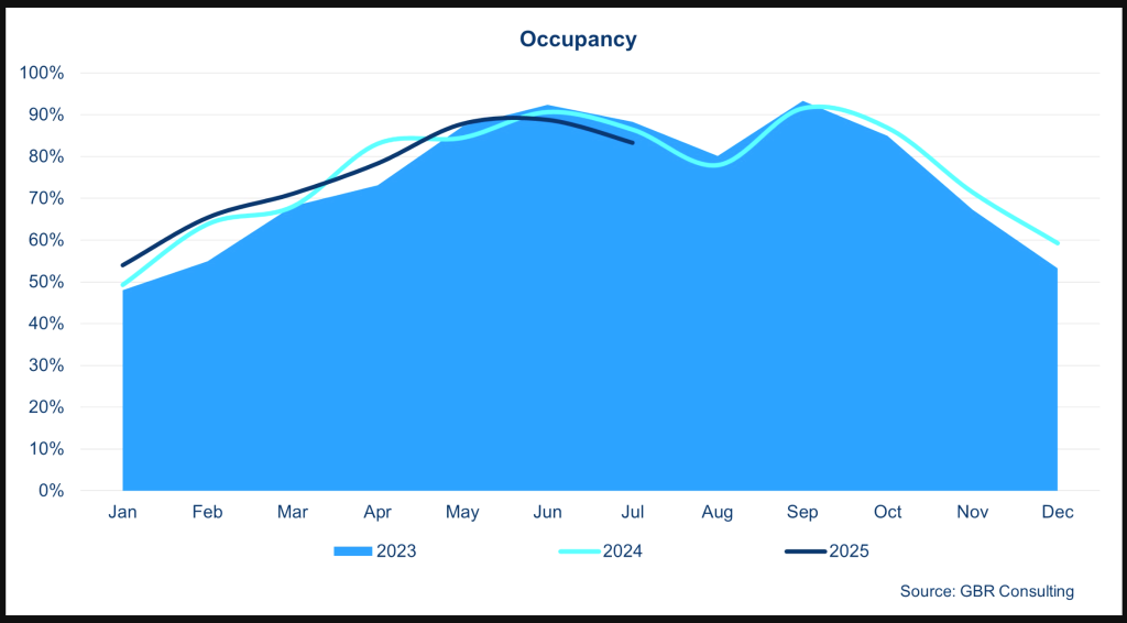 Despite these gains, industry leaders say the slowdown in July, a peak month for Greek tourism, could signal deeper challenges. Occupancy in July fell to 83.3%, down from 86.4% in 2024, marking a 3.6% drop. June also showed a decline of 2%, raising concerns about momentum heading into the high season.