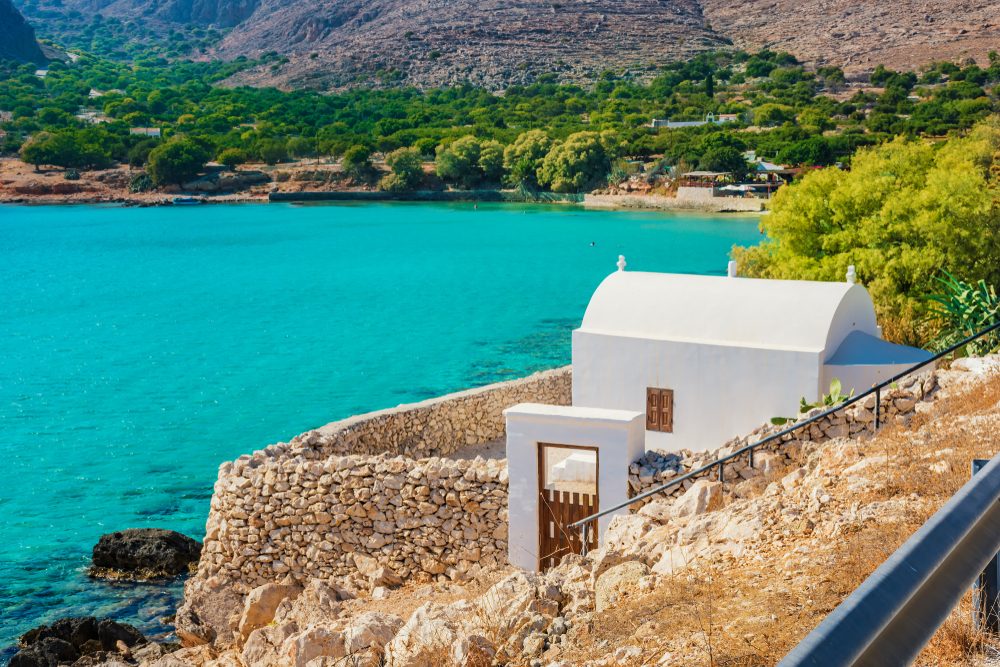 A short journey inland leads to the island’s medieval heart — the old “Chorio” village, once abandoned when pirate raids ceased in the late 19th century. Here, visitors can explore the Church of Panagia Choriani and the Castle of the Knights of St. John, built in the late 15th century atop ancient ruins, offering sweeping views as far as Rhodes.