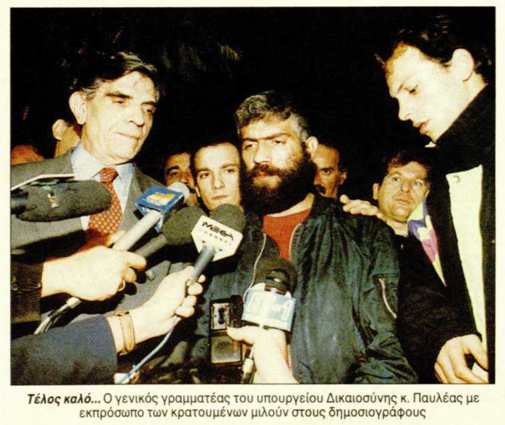 In the courtyard, three lifers waited to speak to reporters in the presence of the Justice Ministry’s secretary general S. Pavleas, two PASOK MPs, and the prison director.