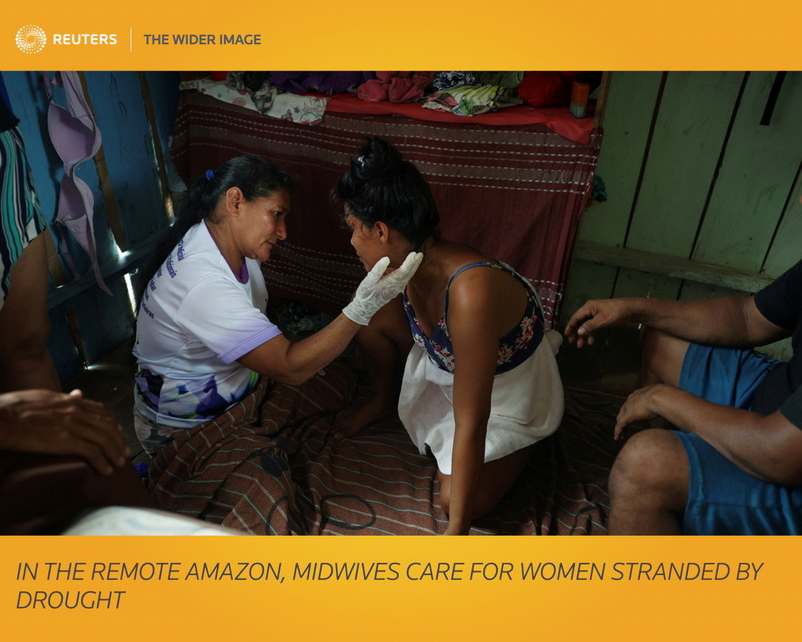 Deep in the Amazon jungle, a pregnant woman needs help. Her baby is about to come, and a drought has parched the rivers that connect her community to the nearest hospital. Enter Tabita dos Santos Moraes, one of the hundreds of traditional midwives who deliver babies in the remote villages of the world’s largest rainforest. “Relax,” says Tabita, smiling. “We will give birth together, the two of us.” REUTERS/Pilar Olivares SEARCH “OLIVARES MIDWIVES” FOR THIS STORY. SEARCH “WIDER IMAGE” FOR ALL STORIES. TPX IMAGES OF THE DAY TEMPLATE OUT