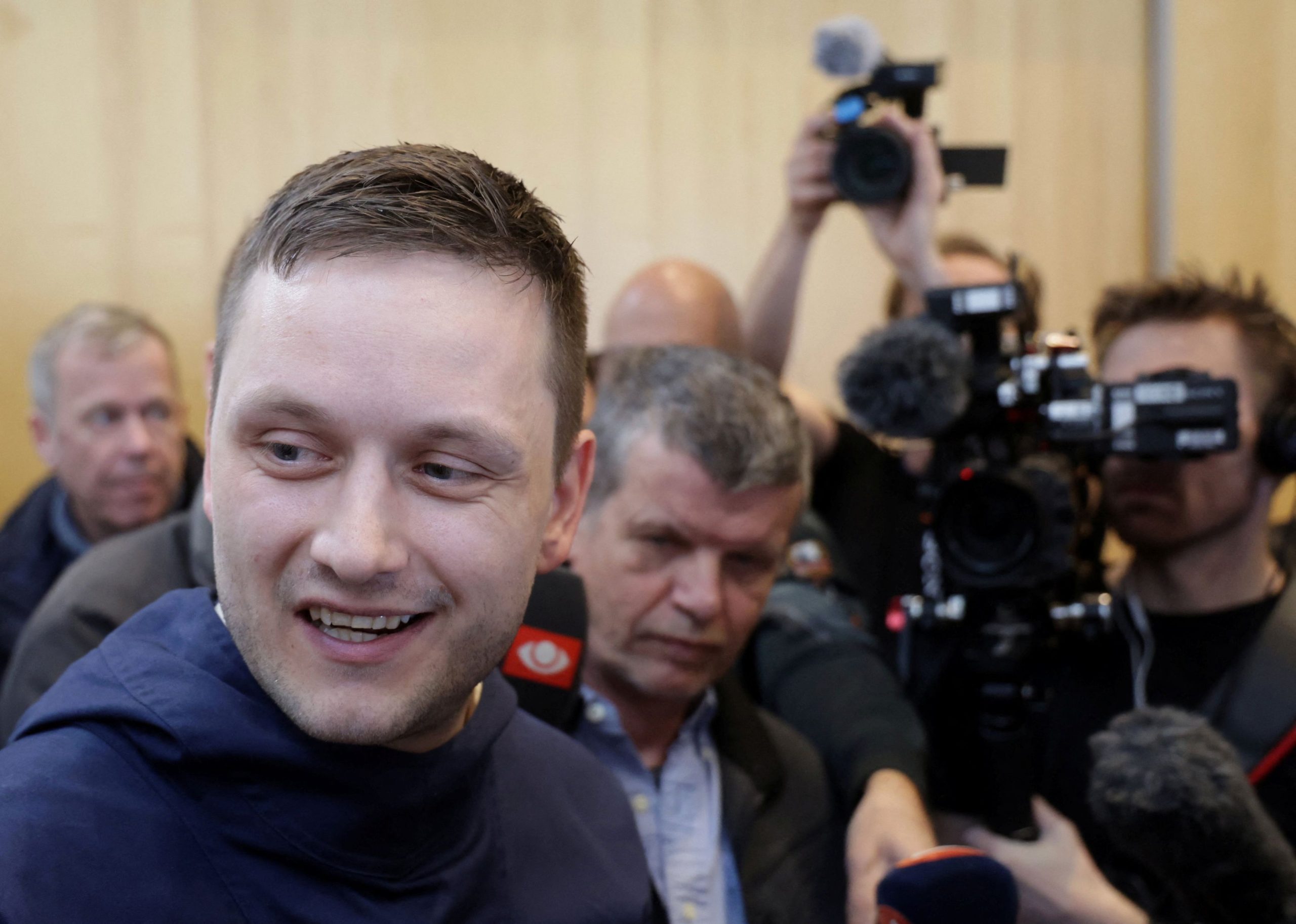 Leader of the Democrats (Demokraatit) party and Greenland’s Prime Minister-elect Jens-Frederik Nielsen talks to the media in Nuuk, Greenland, March 28, 2025. REUTERS/Leonhard Foeger