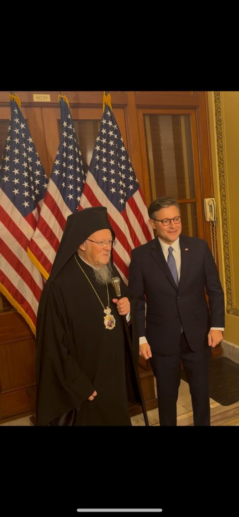 Ecumenical Patriarch Bartholomew, the spiritual leader of more than 300 million Orthodox Christians worldwide, was welcomed at the U.S. Capitol on Tuesday by Speaker of the House Mike Johnson, in a gesture that highlighted Washington’s acknowledgment of the 1,700-year-old Patriarchate of Constantinople as the historic center of the Orthodox Christian world.