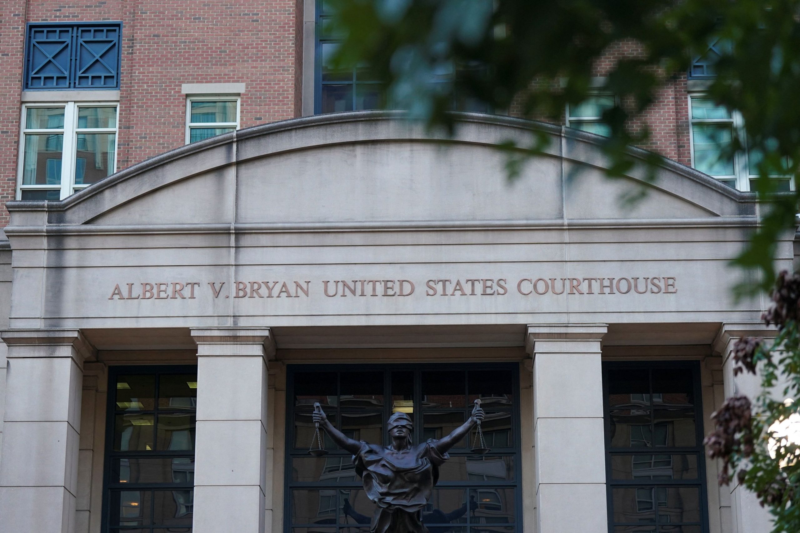 A statue of Lady Justice stands at the entrance of Albert V. Bryan courthouse, home of the U.S. District Court for the Eastern District of Virginia, in Alexandria, Virginia, U.S., September 25, 2025. REUTERS/Al Drago