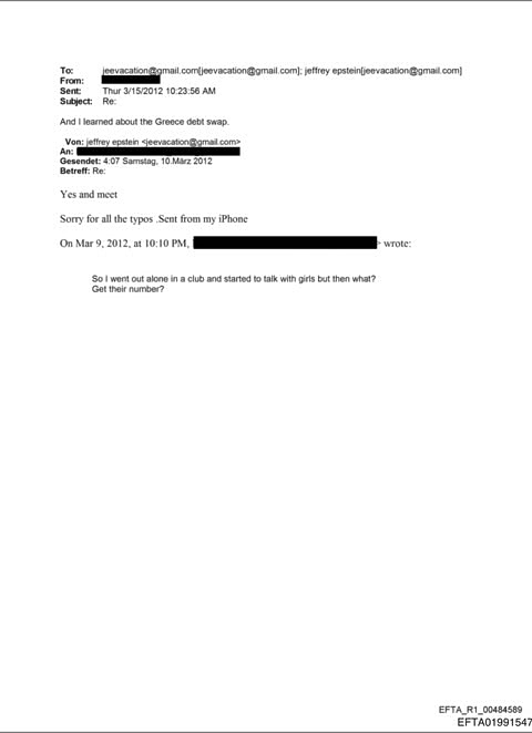 In correspondence from March 2012, Epstein references learning about Greek debt swaps.