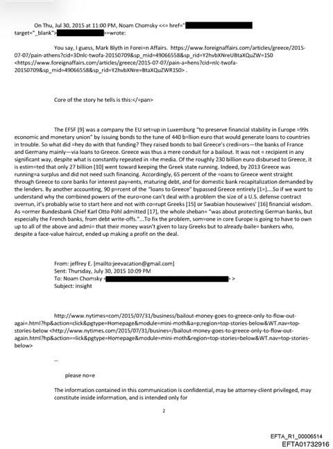 Document 1: July 31, 2015 – Correspondence with Noam Chomsky on Greek Bailout