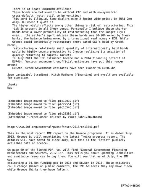 Nav Gupta described an opportunity for investing in illiquid five-month Greek government bonds. Pages 7, and 9 are included from the document.