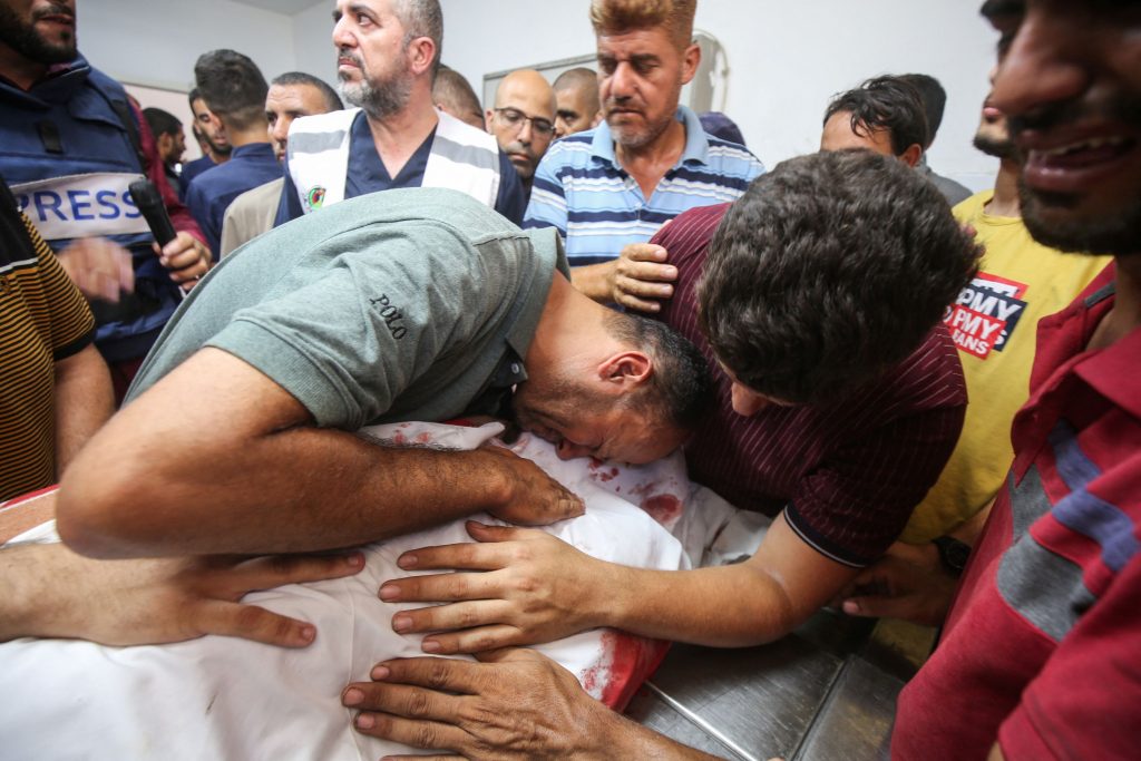 Palestinians react over bodies as they mourn doctor Marwan al-Sultan, director of the Indonesian Hospital in northern Gaza Strip, his wife, his daughter and and his sister, who were killed in an Israeli strike on Wednesday, according to Gaza’s health ministry, at Al-Shifa hospital in Gaza City, July 2, 2025. REUTERS/Mahmoud Issa