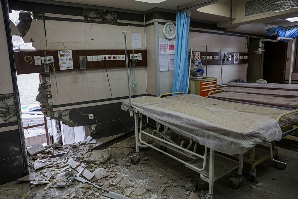 Debris lies next to beds inside a damage hospital ward following an Israeli and the U.S. strike on Gandhi Hotel Hospital, amid the U.S.-Israel conflict with Iran, in Tehran, Iran, March 2, 2026. Majid Asgaripour/WANA