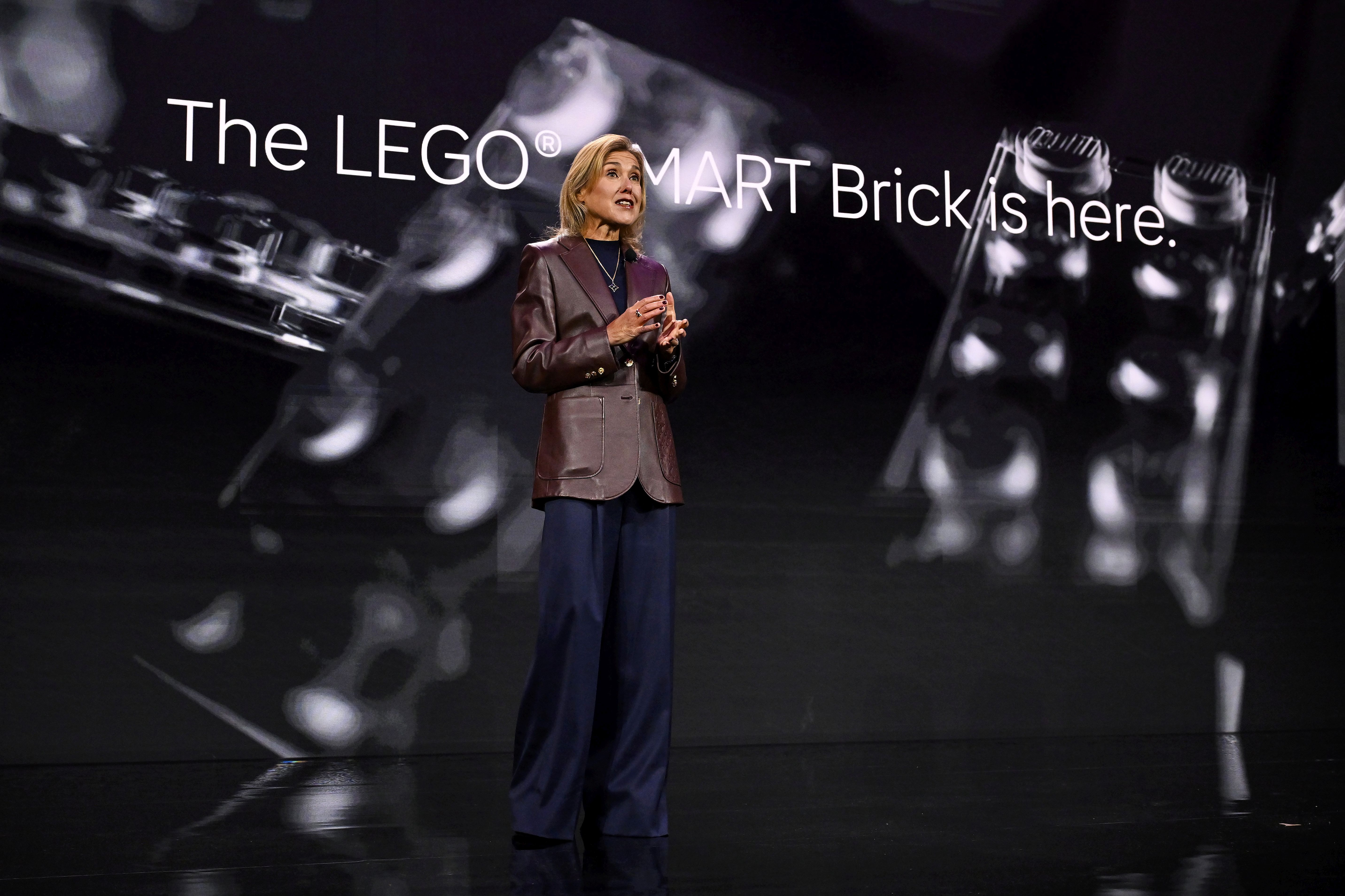 LAS VEGAS, NEVADA – JANUARY 05: Julia Goldin, Chief Product & Marketing Officer, the LEGO Group on stage during the LSP Launch Event at Mandalay Bay Convention Center on January 05, 2026 in Las Vegas, Nevada. (Photo by David Becker/Getty Images for The LEGO Group)
