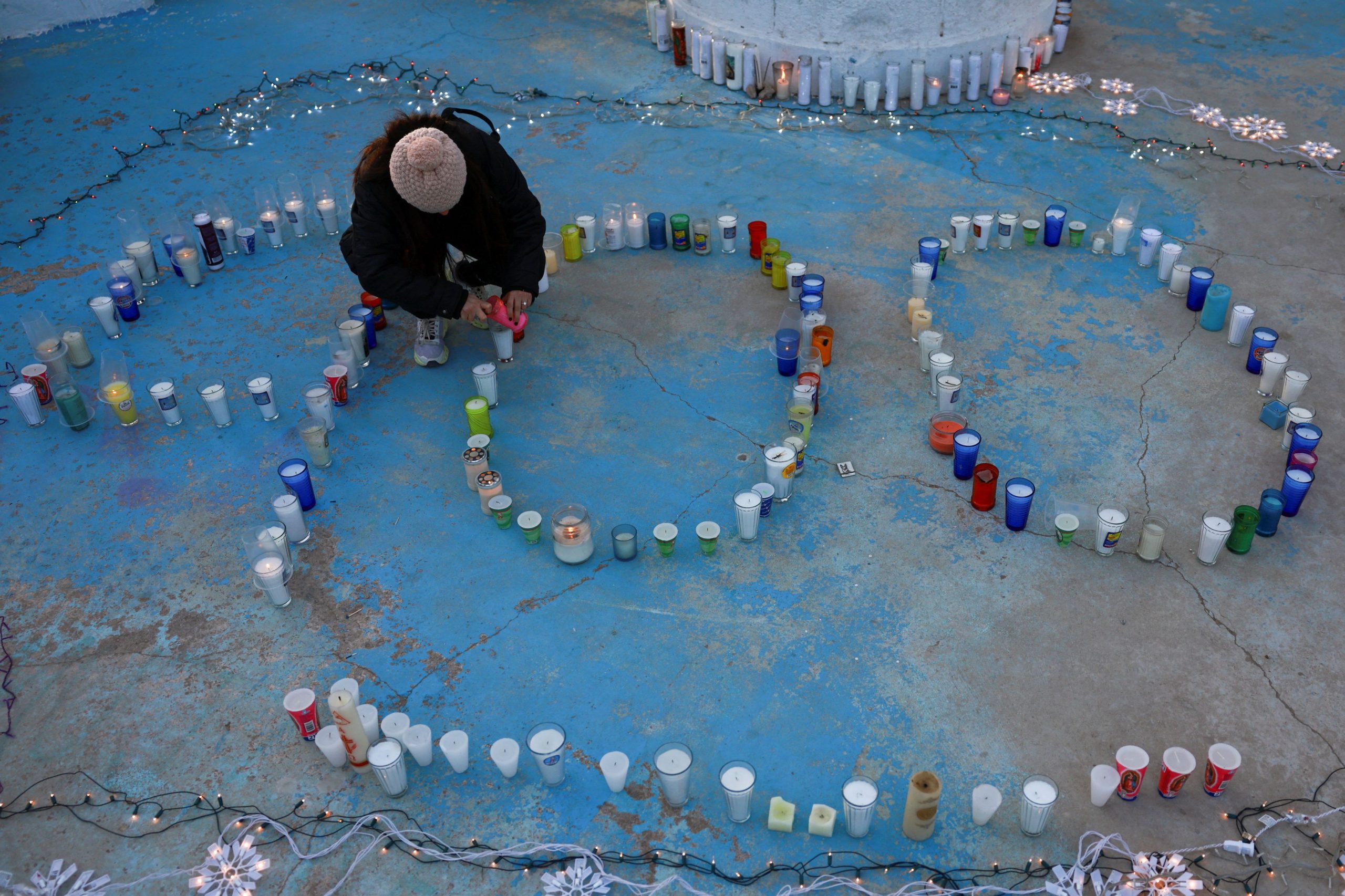A woman lights a candle arranged to form the number 400 on the ground as people and relatives attend a vigil in memory of the victims of a mass grave recently found in Jalisco state, that is believed to be linked to the country’s violent drug gangs, in Ciudad Juarez, Mexico, March 15, 2025. REUTERS/Jose Luis Gonzalez