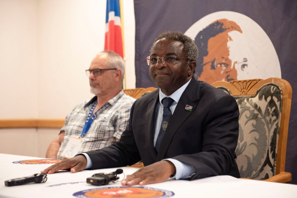 Panduleni Itula, presidential candidate for opposition party IPC (Independent Patriots for Change) attends a press conference in Windhoek, Namibia, November 29, 2024. REUTERS/Noah Tjijenda