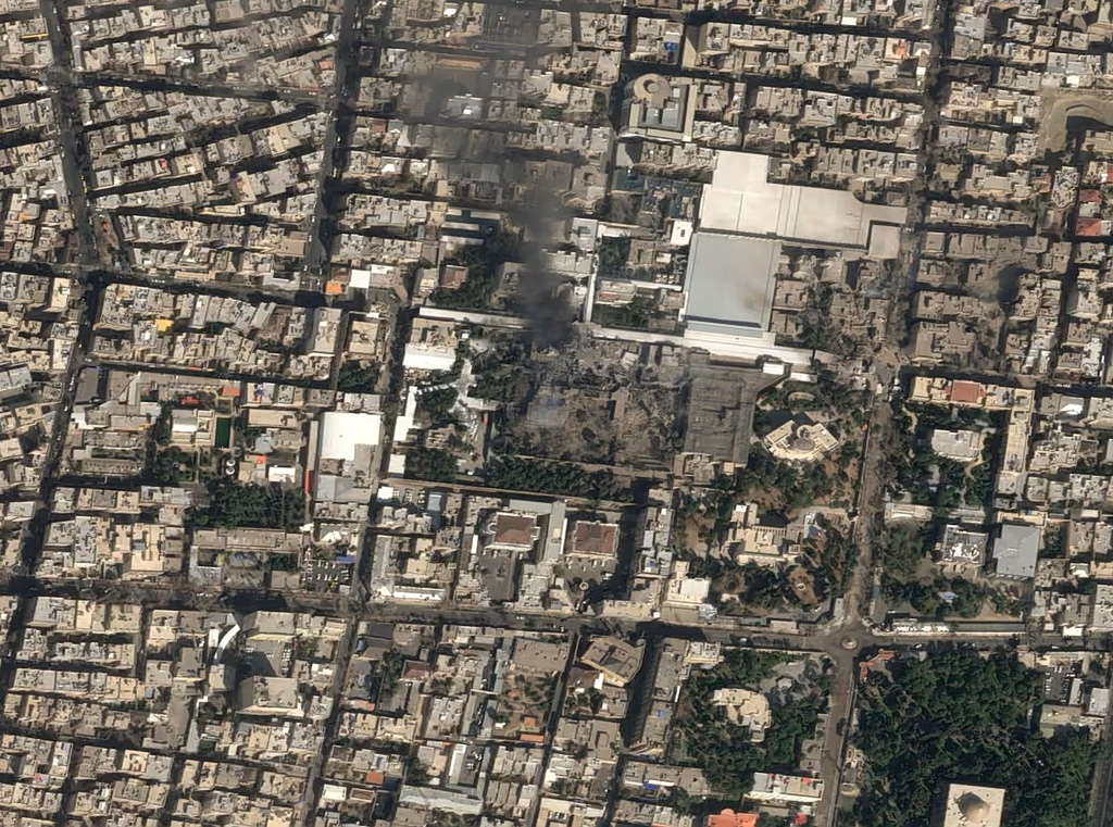 A satellite photo shows the heavily damaged compound in Iran where the supreme leader of Iran reportedly was when the bombing began.