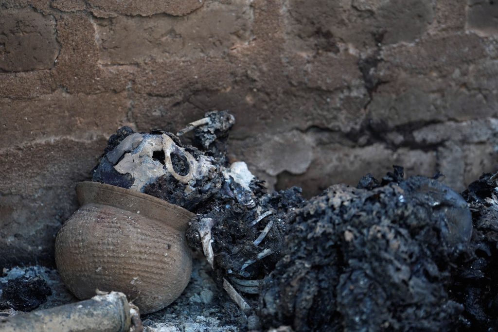 SENSITIVE MATERIAL. THIS IMAGE MAY OFFEND OR DISTURB Charred remains of a victim lie inside a building following a deadly gunmen attack in Yelewata, Benue State, Nigeria, June 16, 2025. REUTERS/Marvellous Durowaiye
