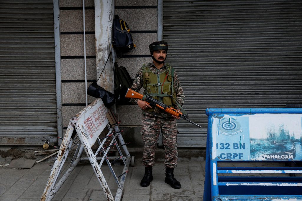 An Indian security personnel stands guard on a street, following clashes between India and Pakistan, in Srinagar, Kashmir May 9, 2025. REUTERS/Sharafat Ali