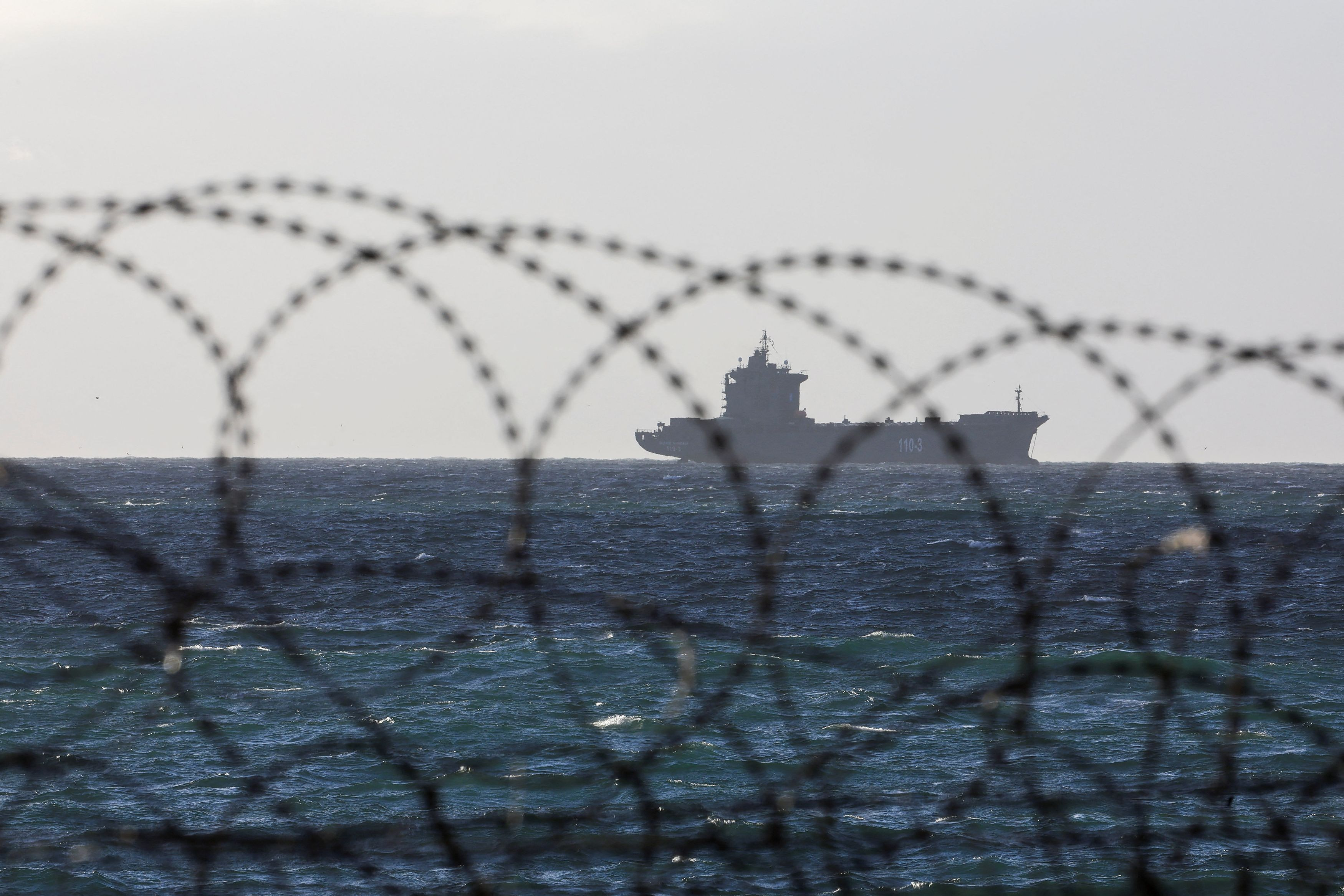 A Russian vessle sails next to an Iranian vessel in False Bay, near the Simon’s Town Naval base on the last day of the BRICS Plus countries which include China, Russia and Iran for a joint naval exercises in South Africa’s waters, in Cape Town, South Africa, January 16, 2026. REUTERS/Esa Alexander