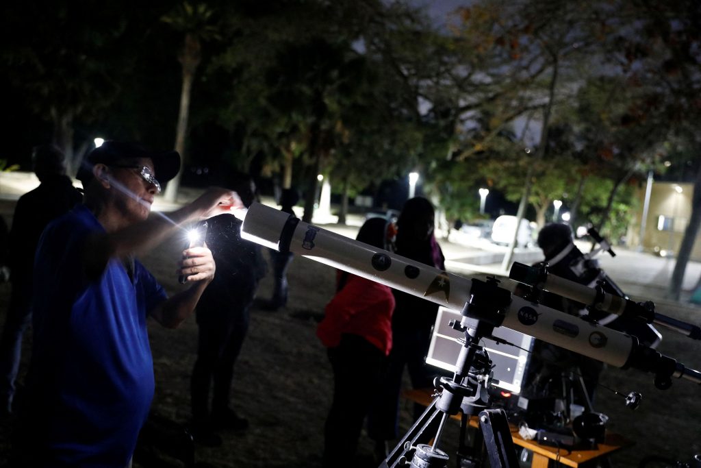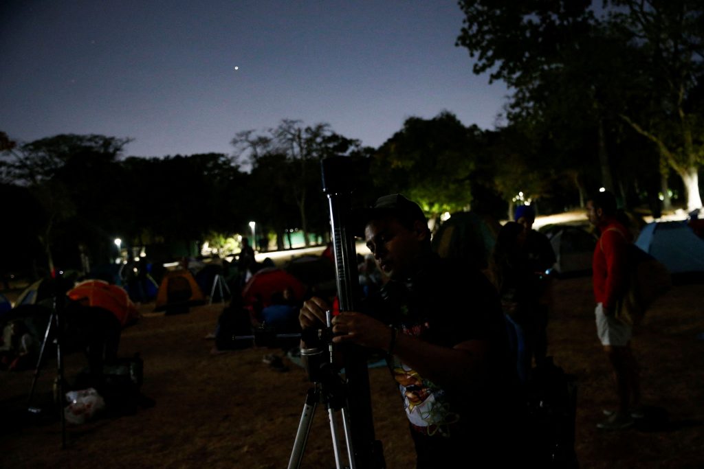 A person sets up their telescope before a full moon during a “Blood Moon” total lunar eclipse, at an overnight camp at the Humboldt Planetarium, in Caracas, Venezuela March 14, 2025. REUTERS/Leonardo Fernandez Viloria