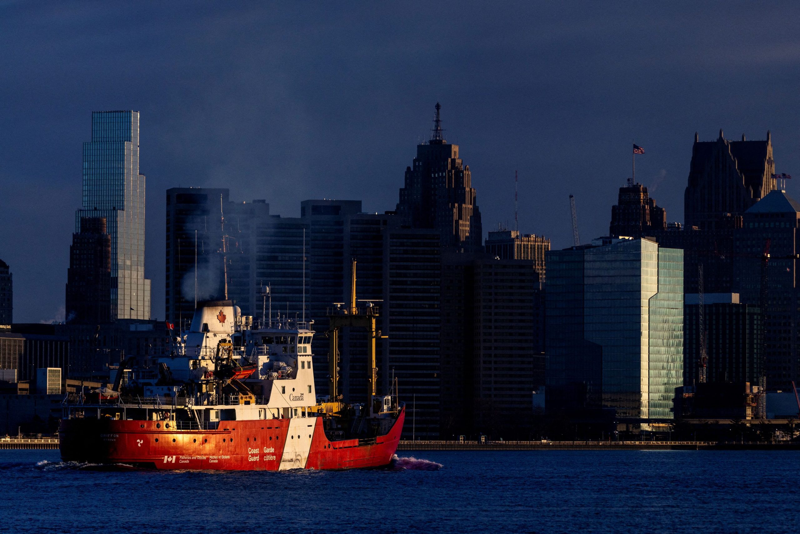 FILE PHOTO: FILE PHOTO: A Canadian coast guard vessel navigates the Detroit River which connects Windsor, Ontario, Canada, and Detroit, Michigan, U.S., as trade tensions escalate over U.S. tariffs and retaliatory measures by Canada, in Windsor, Ontario, Canada February 4, 2025. REUTERS/Carlos Osorio/File Photo/File Photo