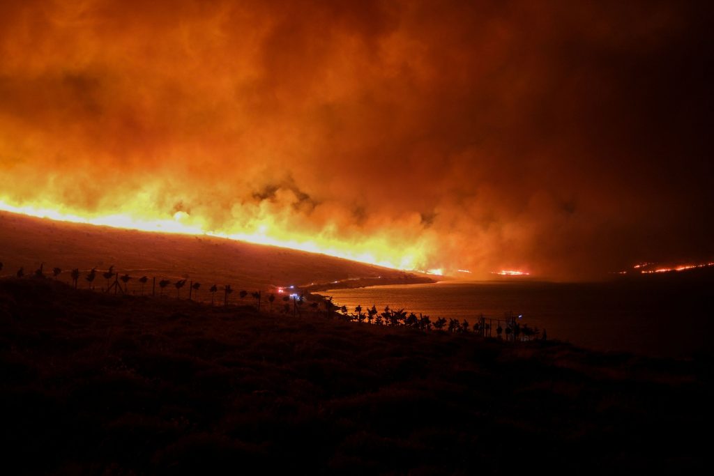 A wildfire burns near Alacati in Izmir province, Turkey, July 3, 2025. REUTERS/Murat Kocabas
