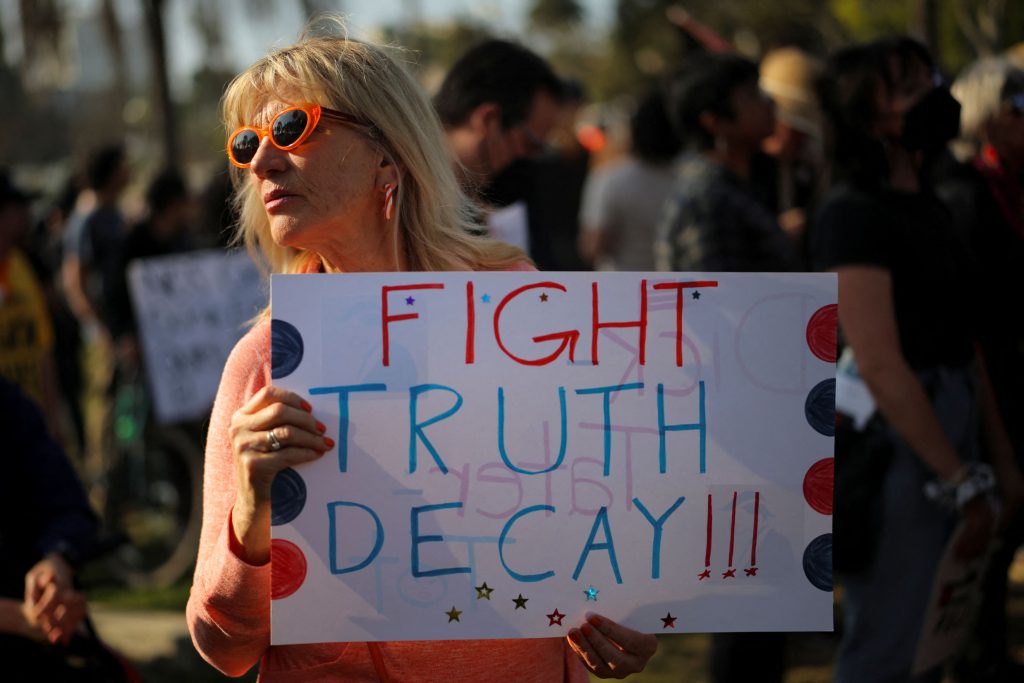 “The constitution is being trampled on,” said 62-year-old protester Mark Diamond from L.A.’s San Pedro district. “If it takes four years, we’ll be out here 100 times.”