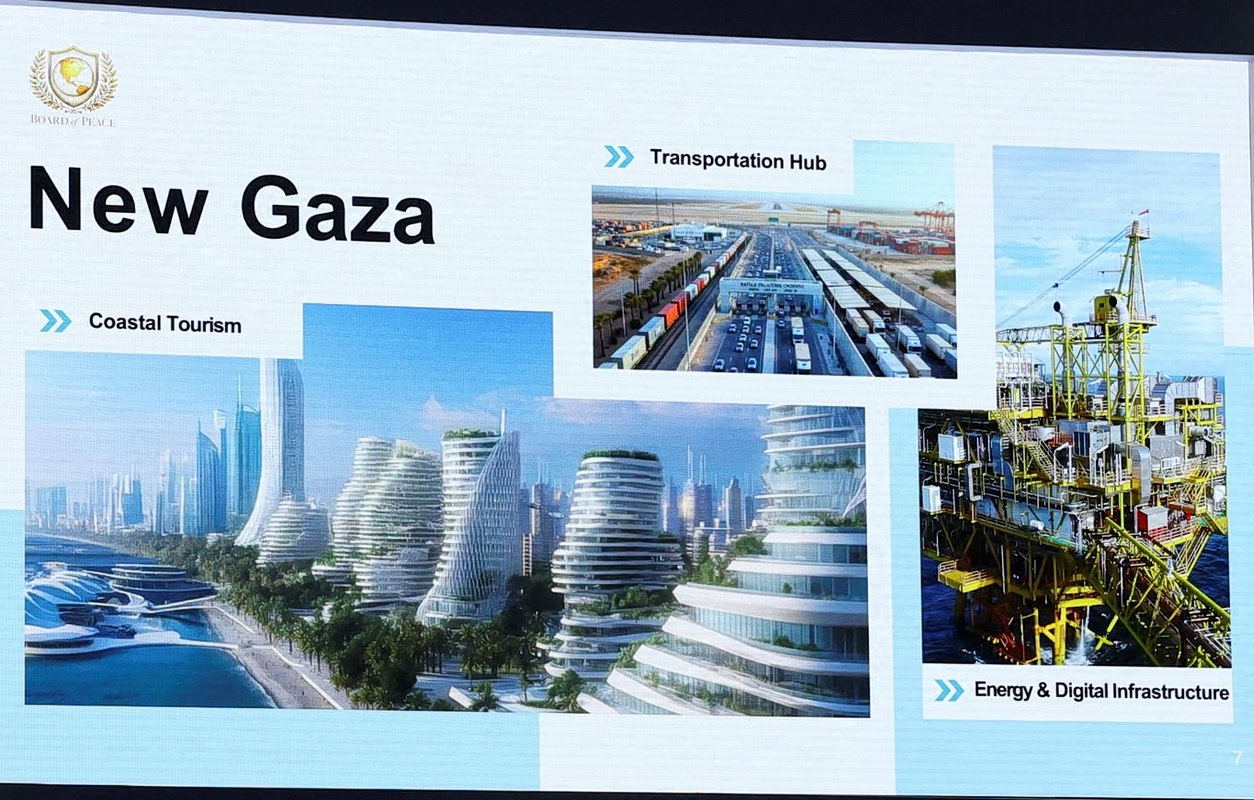 Kushner described a “master plan” to rebuild Gaza from scratch, featuring residential towers, data centres, industrial parks and seaside resorts. A slideshow shown to the audience depicted a Mediterranean coastline lined with high-rise developments reminiscent of Dubai or Singapore. Redevelopment would begin in Rafah, in southern Gaza, an area currently under full Israeli military control.