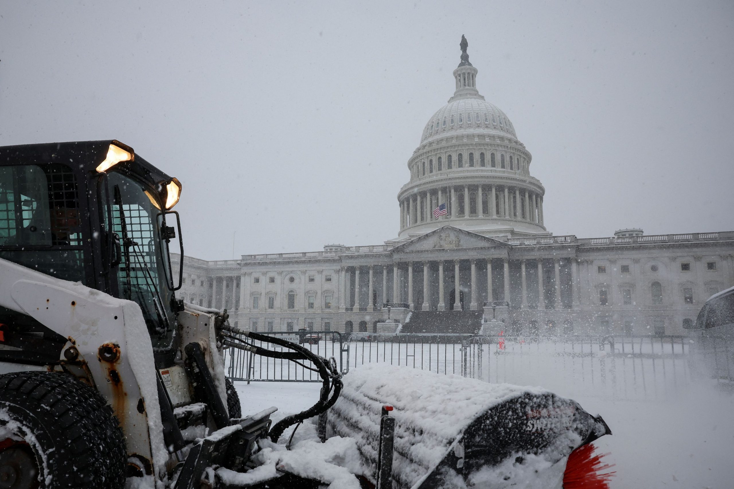 A snowplow clears snow in front of the U.S. Capitol, as a winter storm that brought snow, ice and freezing temperatures to a broad swath of the U.S. arrived in Washington, U.S. January 6, 2025. REUTERS/Marko Djurica