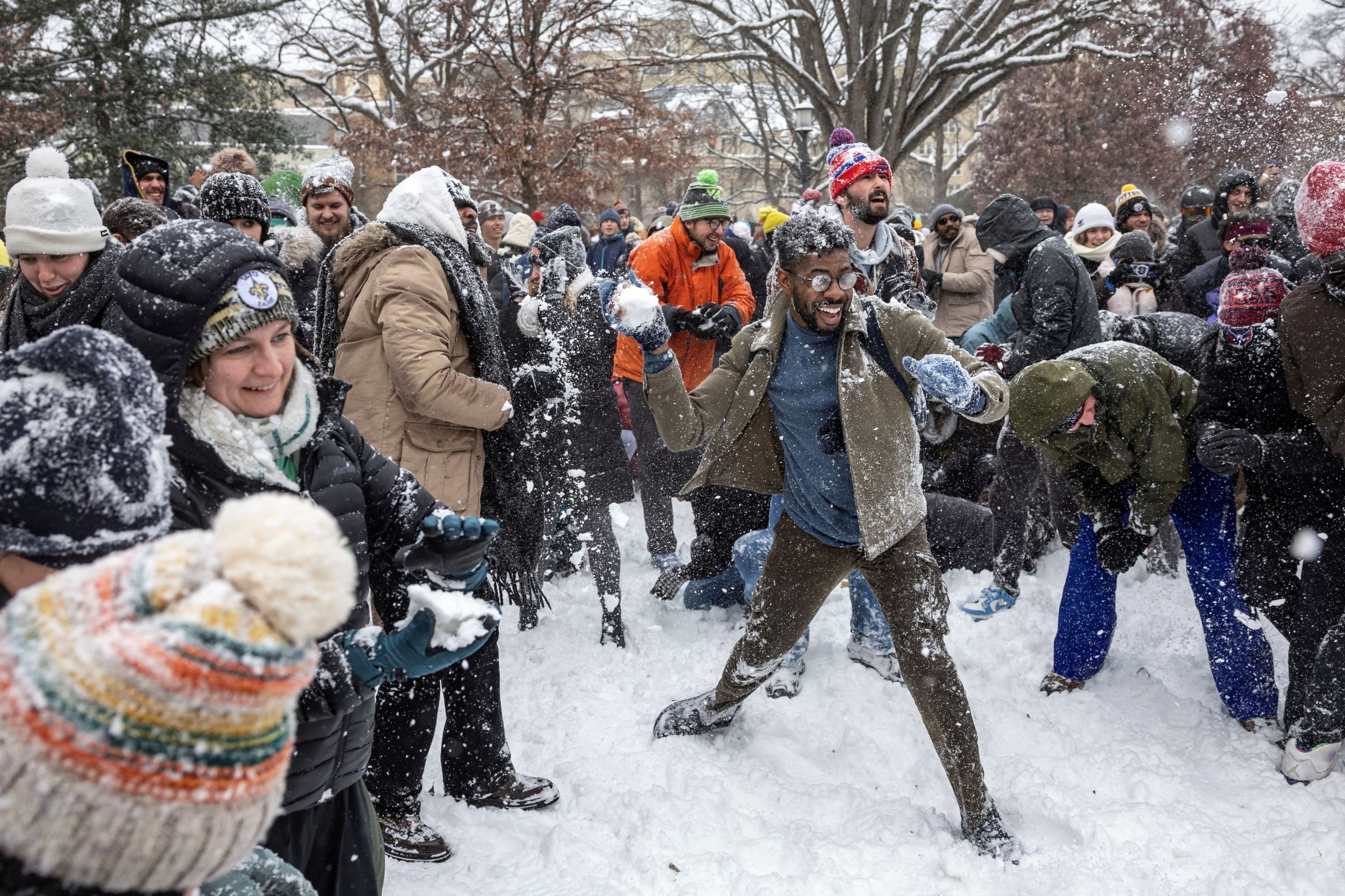 People participate in snowball fight at Meridian Hill Park, as a winter storm that brought snow, ice and freezing temperatures to a broad swath of the U.S. hits Washington, U.S. January 6, 2025. REUTERS/Marko Djurica
