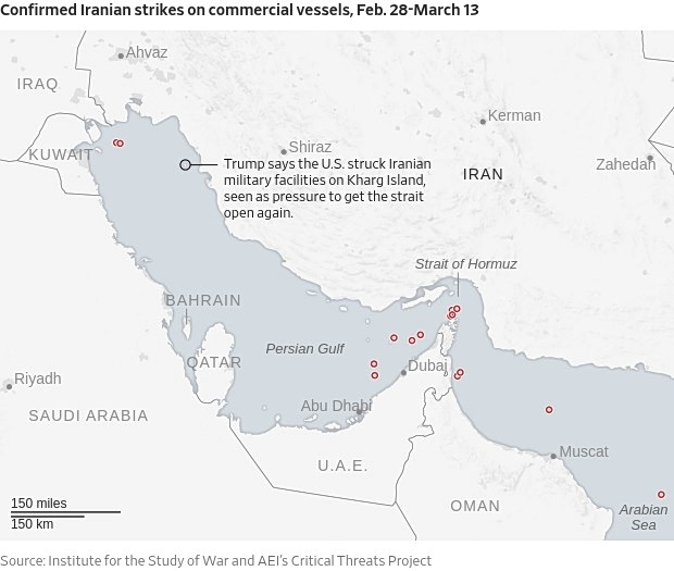 Ship transits through the narrow waterway have fallen from over 150 a day to single digits by this week, according to monitoring firms. Iran is suspected in the attacks of at least 16 foreign commercial ships in the Persian Gulf area since the war began on Feb. 28, causing terrifying explosions and killing sailors.