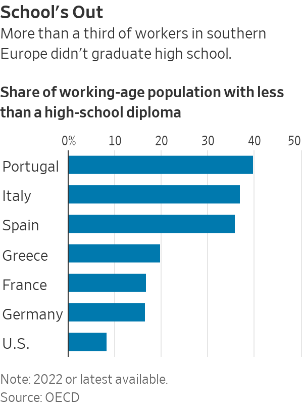 Portugal’s gross domestic product grew nearly 8% between 2019 and 2024, compared with less than 1% for Germany, according to International Monetary Fund estimates. The government recorded a rare 1.2% of GDP budget surplus last year, and its debt-to-GDP ratio is expected to fall to 95% this year, the lowest since 2009. Portugal’s population is growing again after years of decline, thanks in part to an influx of migrant workers and to various tax incentives and investor visas that have attracted high-income workers.