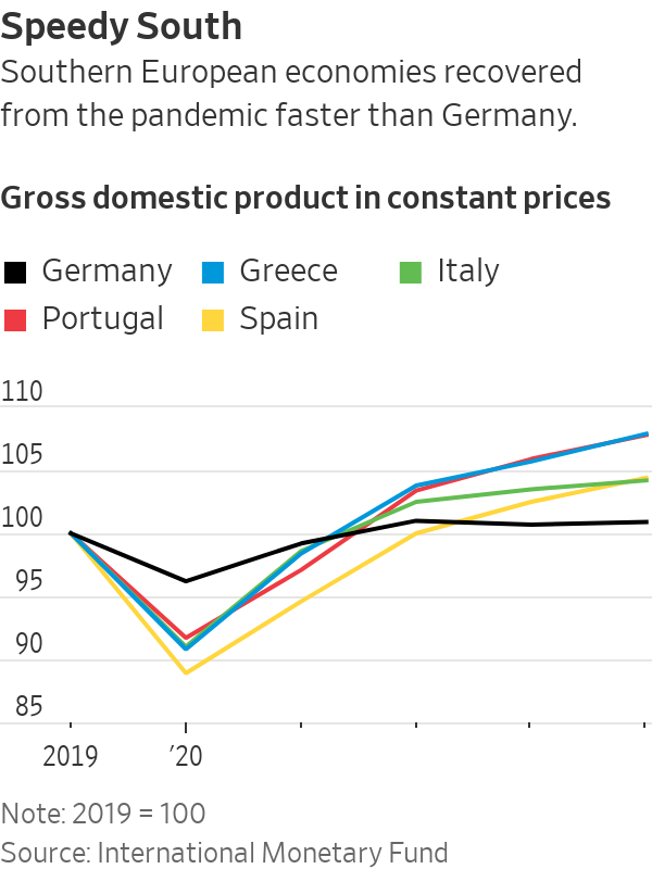 Even as some worry the boom may be creating other problems, the Mediterranean rush is turning Europe’s recent economic history on its head . In the 2010s, Germany and other manufacturing-heavy economies helped drag the continent out of its debt crisis thanks to strong exports of cars and capital goods, especially to China.