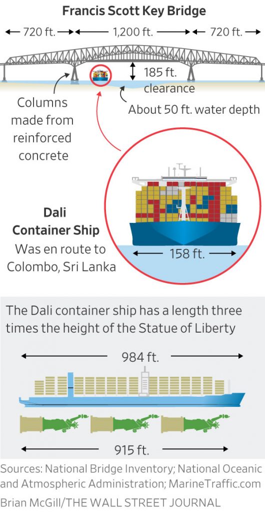 The Dali was built in 2015 by South Korea’s Hyundai Heavy Industries . The Panamax-type ship, which can carry up to 10,000 containers, is an industry workhorse and one of thousands that regularly transit through the Panama and Suez Canals. While dwarfed by the biggest containerships, a vessel the Dali’s size is typical for U.S. ports on the East Coast. A few days before entering Baltimore’s harbor, the ship had stopped in Norfolk, Va.