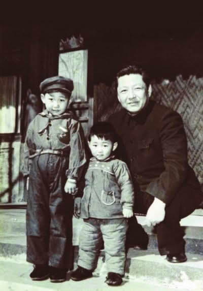 Xi Jinping, wearing a cap, with his father Xi Zhongxun. Public domain/Large Norwegian Encyclopedia