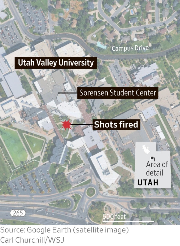 A statement from Utah Valley University said a “single shot was fired on campus toward a visiting speaker. Police are investigating now, suspect in custody.”
